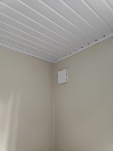 Uusi korvausilmalaite on siisti ja siinä on suodatin sekä sulkutoiminto. Hyttysverkot jätettiin pois ulkopuolelta, sillä osaan laitteista ei pääse käsiksi ilman nostinta. Näin ollen kaikki puhdistaminen onnistuu sisältä käsin.